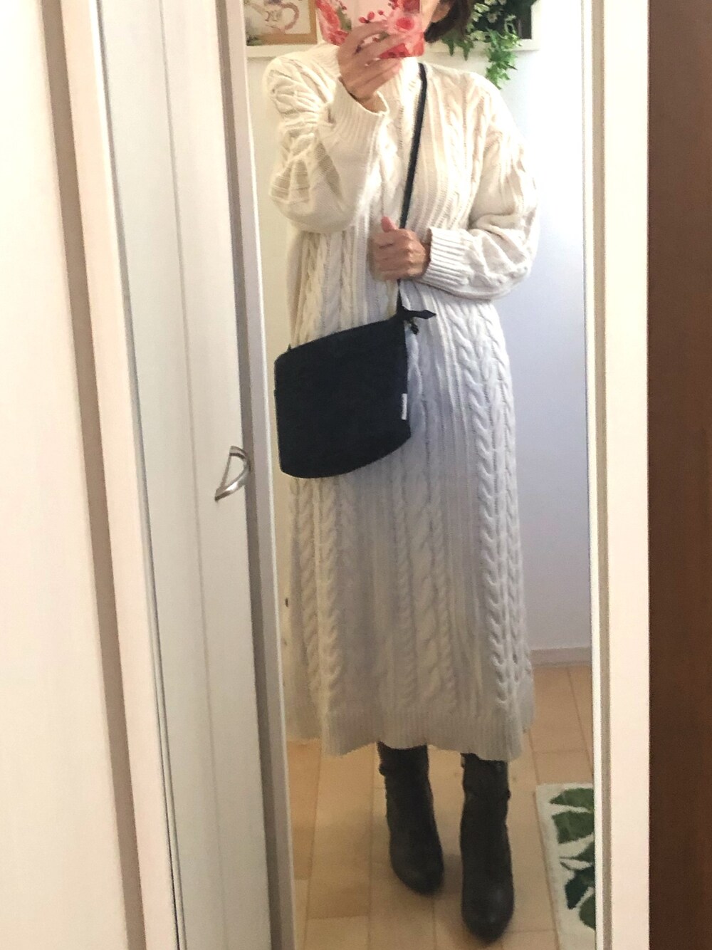 Ring-go'roundのワンピース「裾釦ロングケーブルニットワンピース」を使ったコーディネート