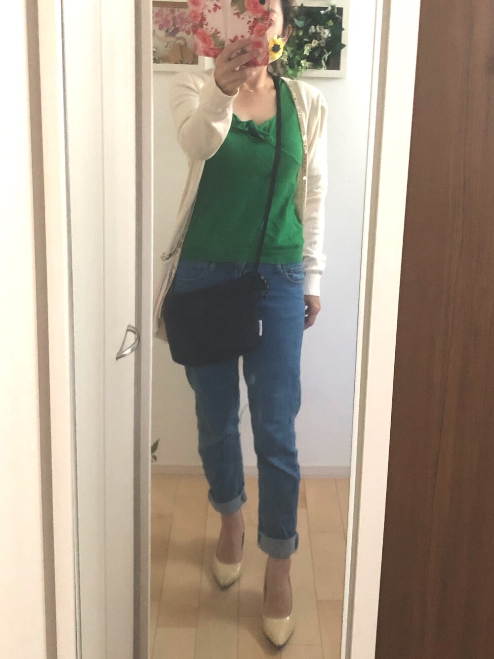 Ring-go'roundのデニムパンツ「ハイウエストテーパードデニムパンツ」を使ったコーディネート