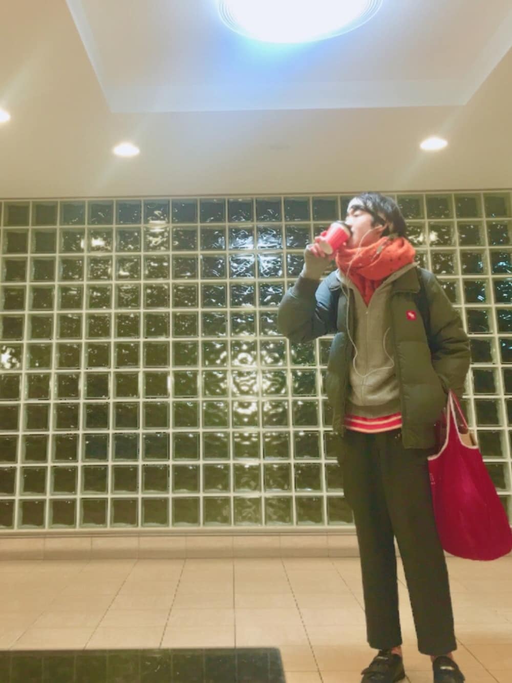 金髪にする前日、3月23日の服装です。 この日以降、バイトを2週間ほどお休みしました。しかも、渡航の予定があったので、必要そうなものをバイトの早番後に買ってから、 ゴリラコーヒーというところに初めて行きました。コーヒーは飲めないので、紅茶。 3月8日に髪色を暗くして、9日からバイトに復帰しました。