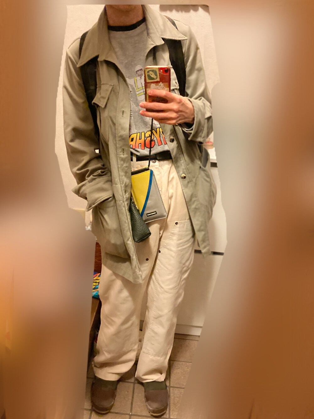 パロディTシャツをアクセントにミリタリー寄りな雨の日コーデ。 ジャケットはフリマで知人から買い取ったもの。 スニーカーはソールを張替えて履いてるものです。 最近はすっかり暑いですねー こんな格好暑くてできないよ。 6月15日