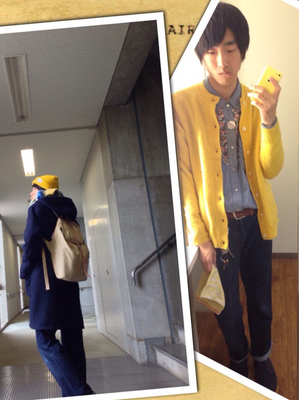 12月17日、黄色と青で揃えました。 マフラーも黄色と青のチェック。靴も青と黄色のツートン。 シャツはイーン ラコステのタオルハンカチひーらひら そんな感じでーす( ´ ▽ ` )ノ