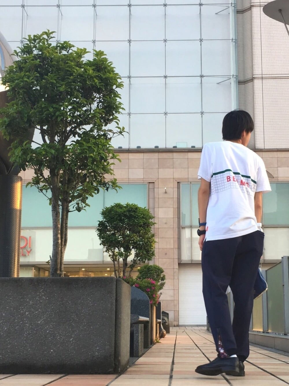 こどもの日、 テニスして、着替えて、ぶらついて、、 フレッドペリー×ナリフリのトラックパンツがデティールがスラックスっぽいので、同系色の革靴を履いてます。 テニスをした後なので、テニスがテーマだったビームス×リーボックのTシャツを着ました。 この後、トラブルが起きました(笑)