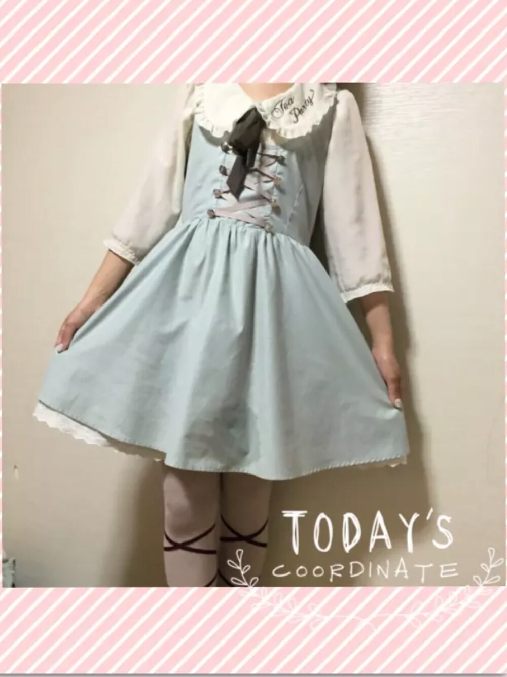 ずっとしたかったアリス風コーデ わしレースアップの靴下好きすぎでしょw 生足NGなので夏が怖い……(結構分厚い) blue rougeのジャンスカはインナーで結構印象変わるから面白いʕु•̫͡•ʔु