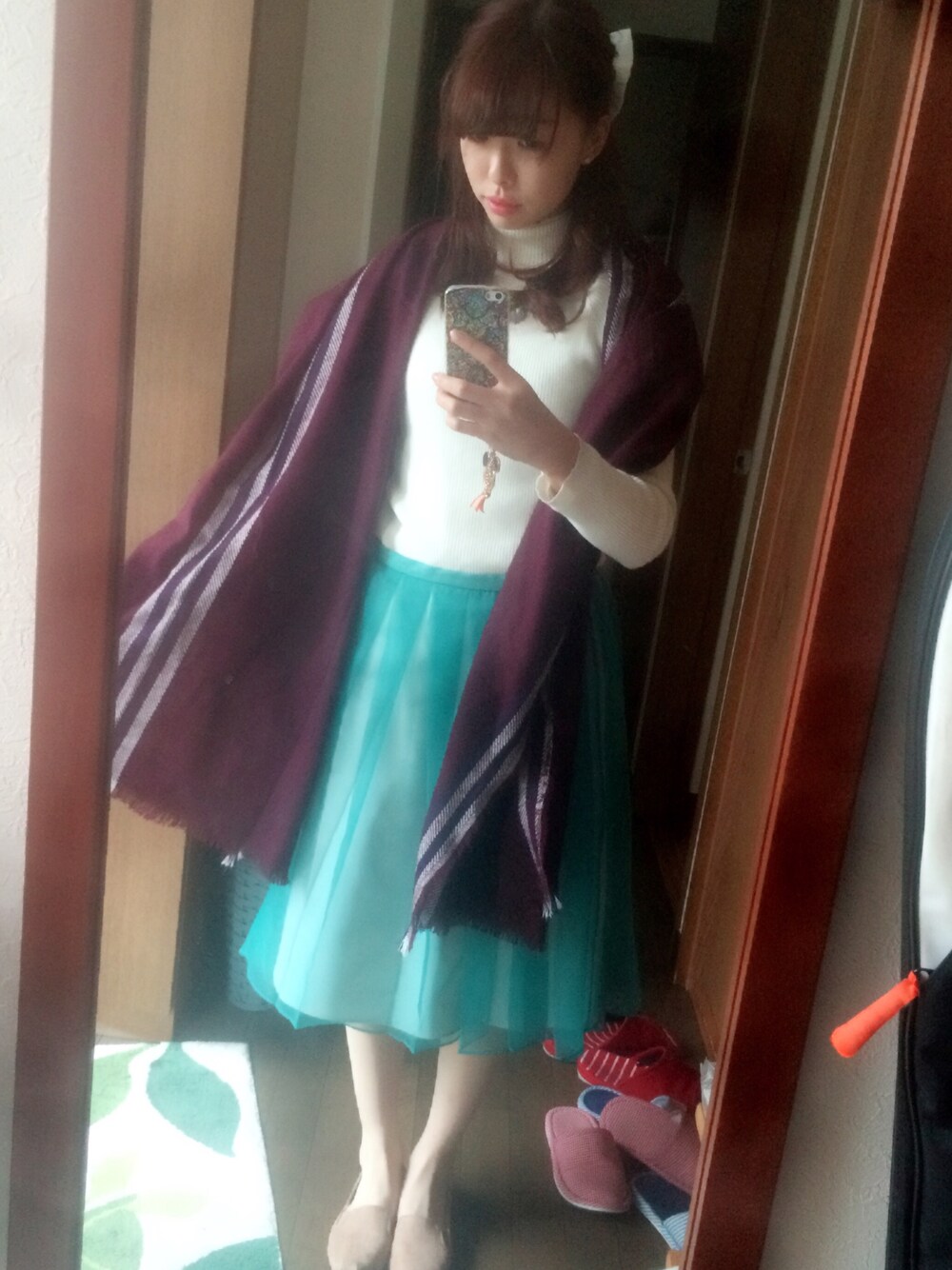 ディズニーシーに行ってくる! アリエルを意識したコーディネート💫 電車でかなり浮いてるけど、気にしない!