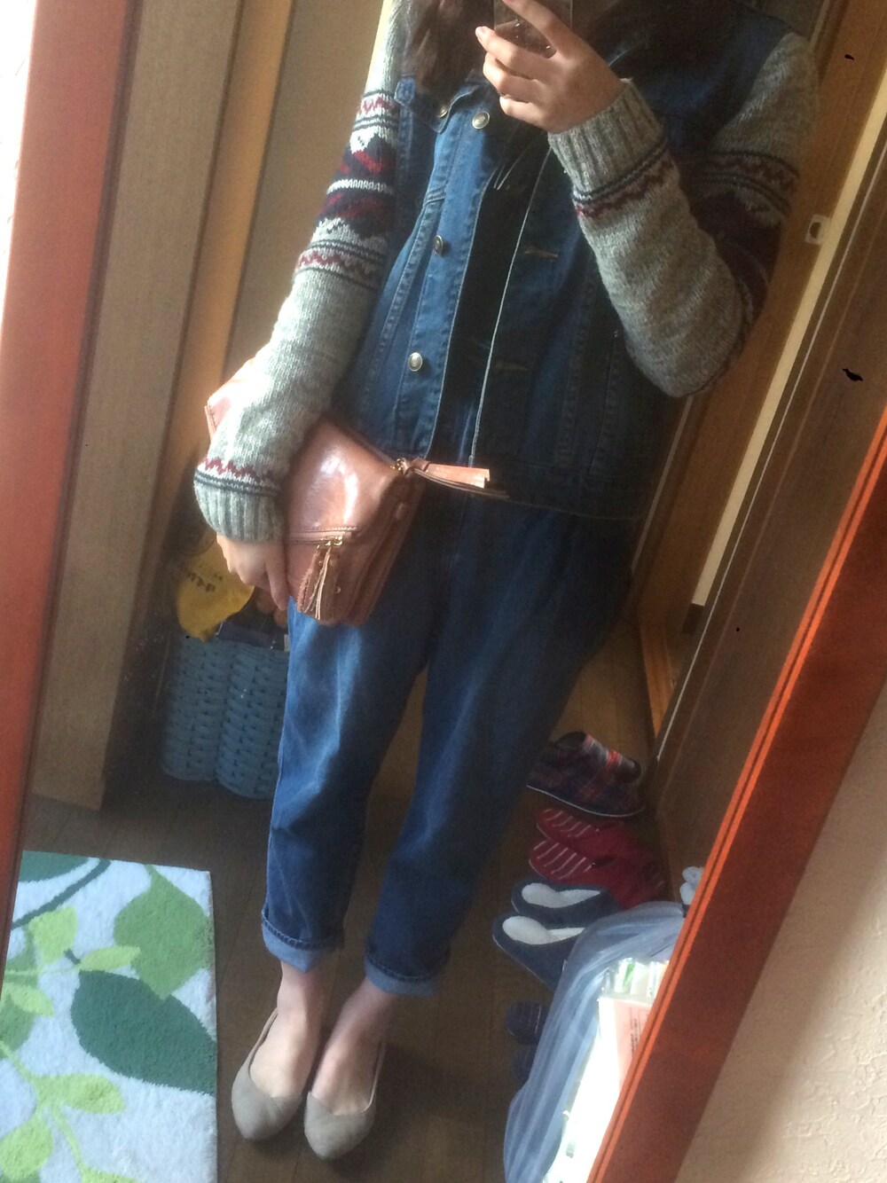 デニムonデニム。ずっとデニムジャケットと同じ色のパンツ欲しかったんだけど今日着てみたら同じ色でセットアップみたいで嬉しかったーーー❤️