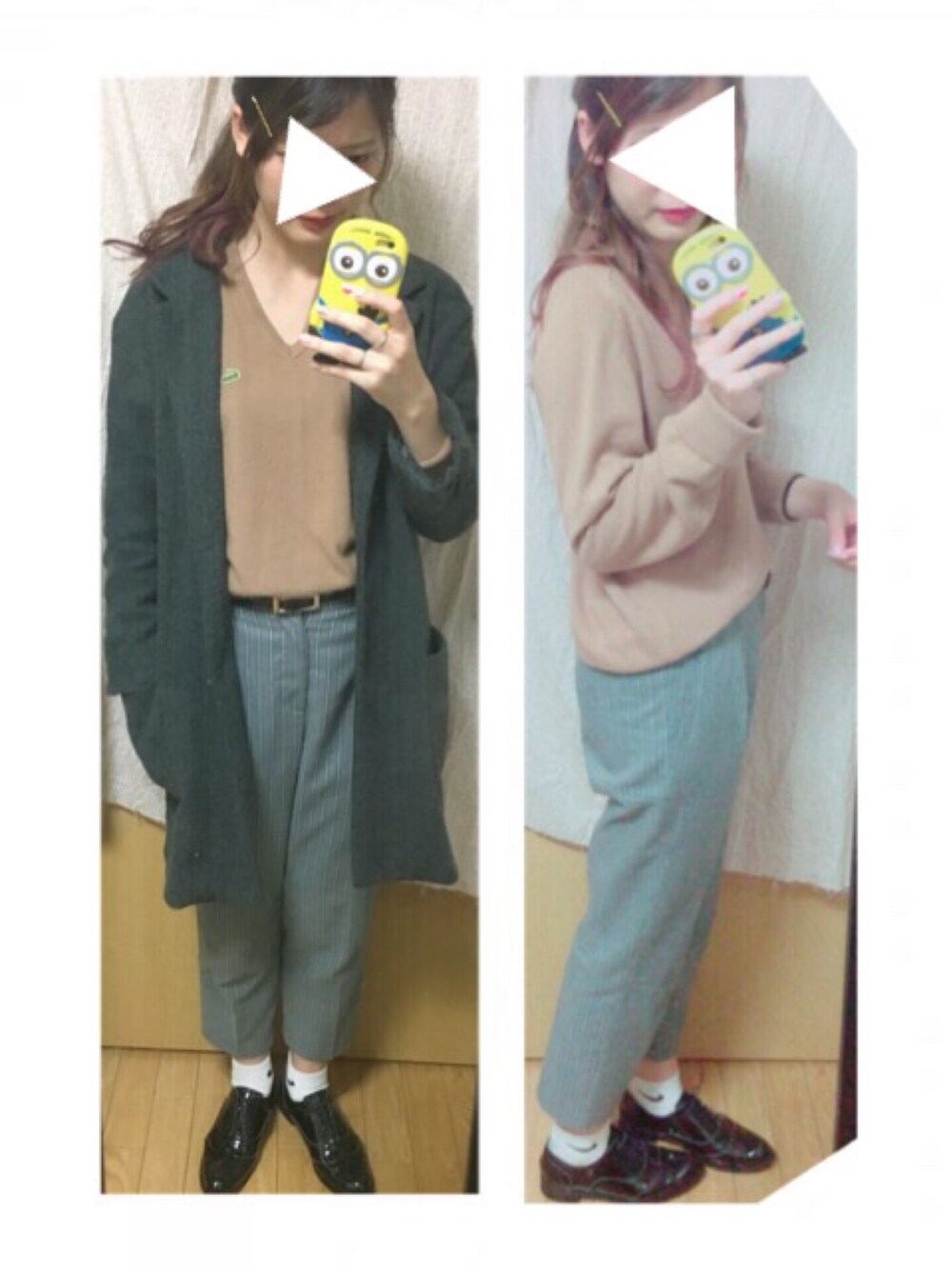 買ったばっかりのRay BEAMSのレースアップシューズそっこー履いたけど靴擦れひどくて結局スタンスミスに履き替えた🙃🙃🙃 ちょっとずつ慣らしてこー(°_°) 見えにくいけどグレーのストライプパンツ履きやすい✌️ たいていの服には合うから時間ない日このコートばっか着てる(≧∇≦) 新しいコート頼んでるのがクリスマスらへんで届くからわくわくだな〜〜〜〜 茶色の背景にキャメルのニットはわかりづらかったからとりあえず布掛けてみたけど雑〜〜(笑)