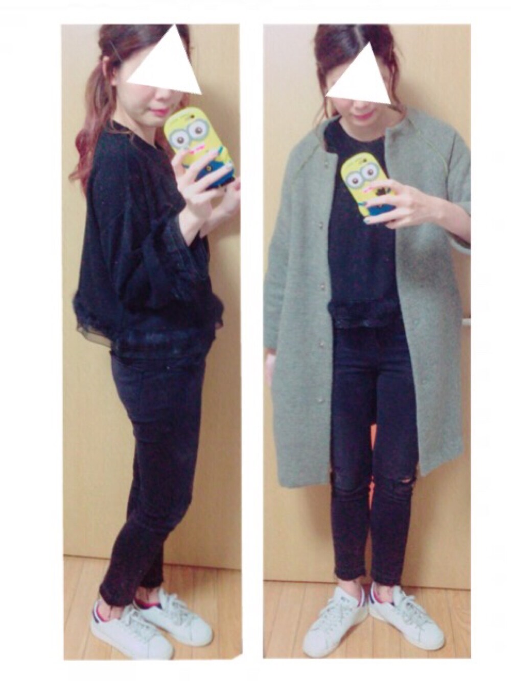 帰省した時にお母さんと買い物行ったときたくさん試着して決めたダメージスキニーパンツ(≧∇≦) 他のだとむちむちしててもこれはちょっっとだけ細く見える👏(気がする) このコートの中ユニクロのウルトラライトダウン着てます✌️ 最近毎日着てる あったかい✌️