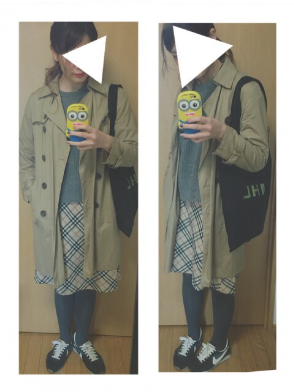 古着のBurberryのスカート☺️ ちょっとあったかかったからトレンチコート💓 イヤリング、シアタープロダクツのみたい(≧∇≦)で買ったwegoの安いやつ💓 めっちゃ痛いんですけど緩め方とか知ってる方いたら教えてください( *_* )笑