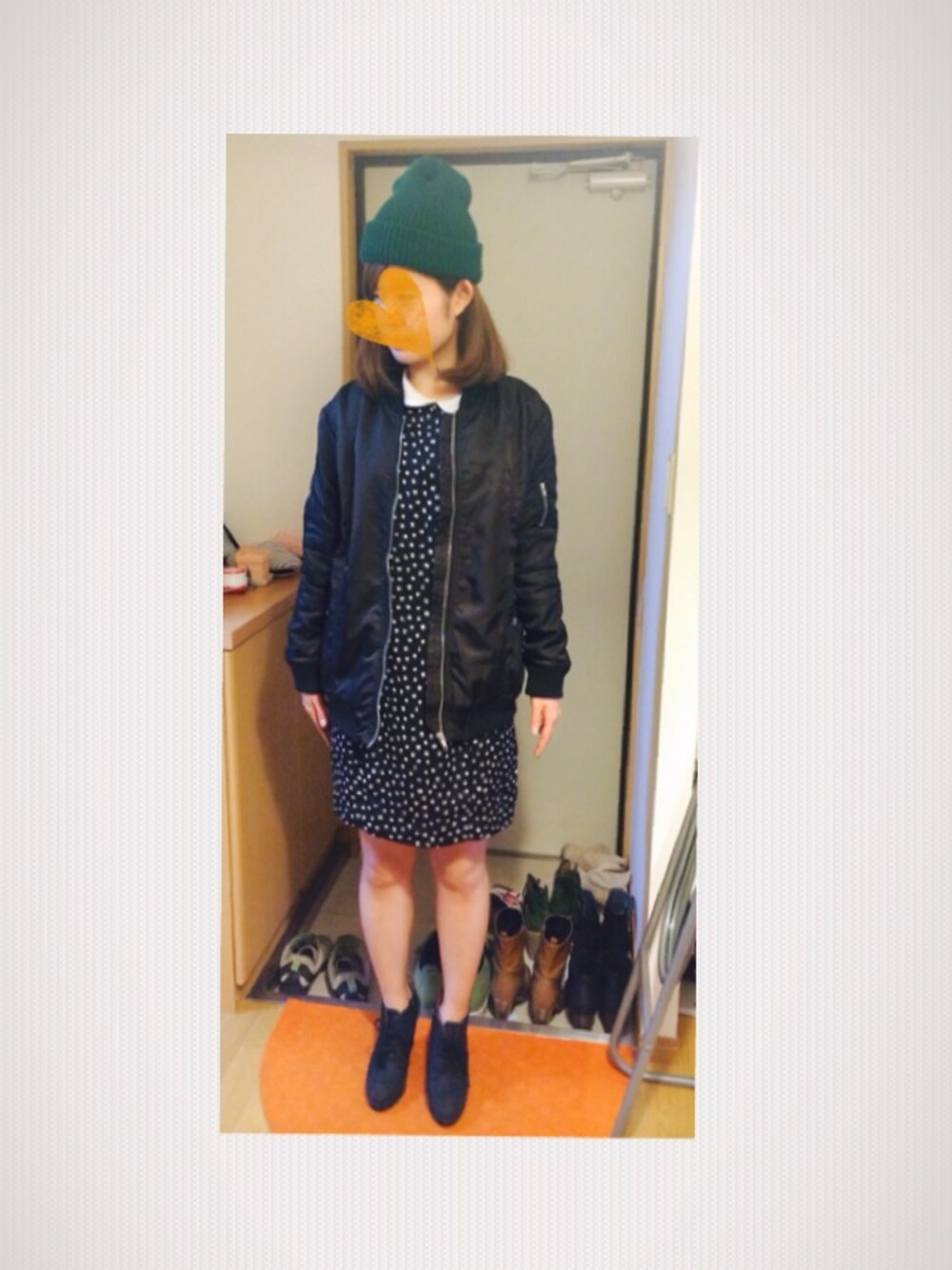 ニットキャップ:Artex Knitting Mills ワンピース:ZARA MA-1:UNIQLO