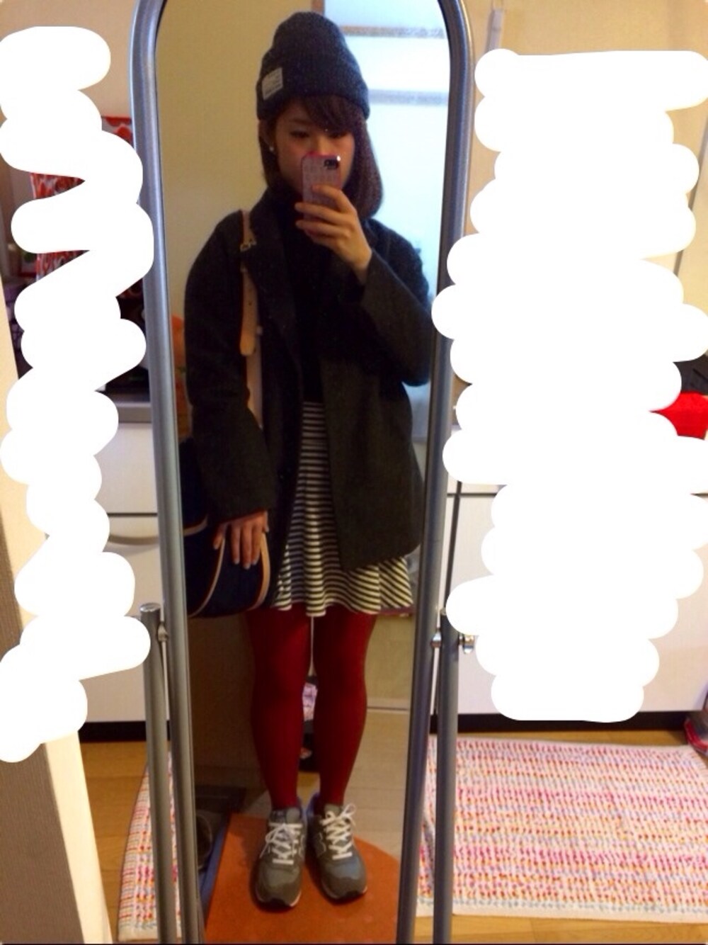 赤とグレーの組み合わせが好きです☻ ニット:URBAN RESEARCH DOORS スカート:AmericanApparel タイツ:gu コート:無印 かばん:Yuketen