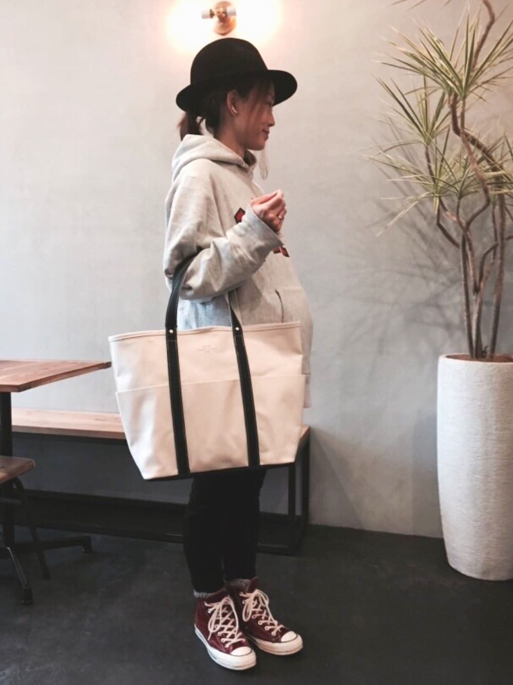 マタニティコーディネート♡ 妊娠9か月目です♡ マタニティウェアとして主に主人の服を着てます^ ^ 着用アクセサリーは自身のブランドwarmthのものです♡