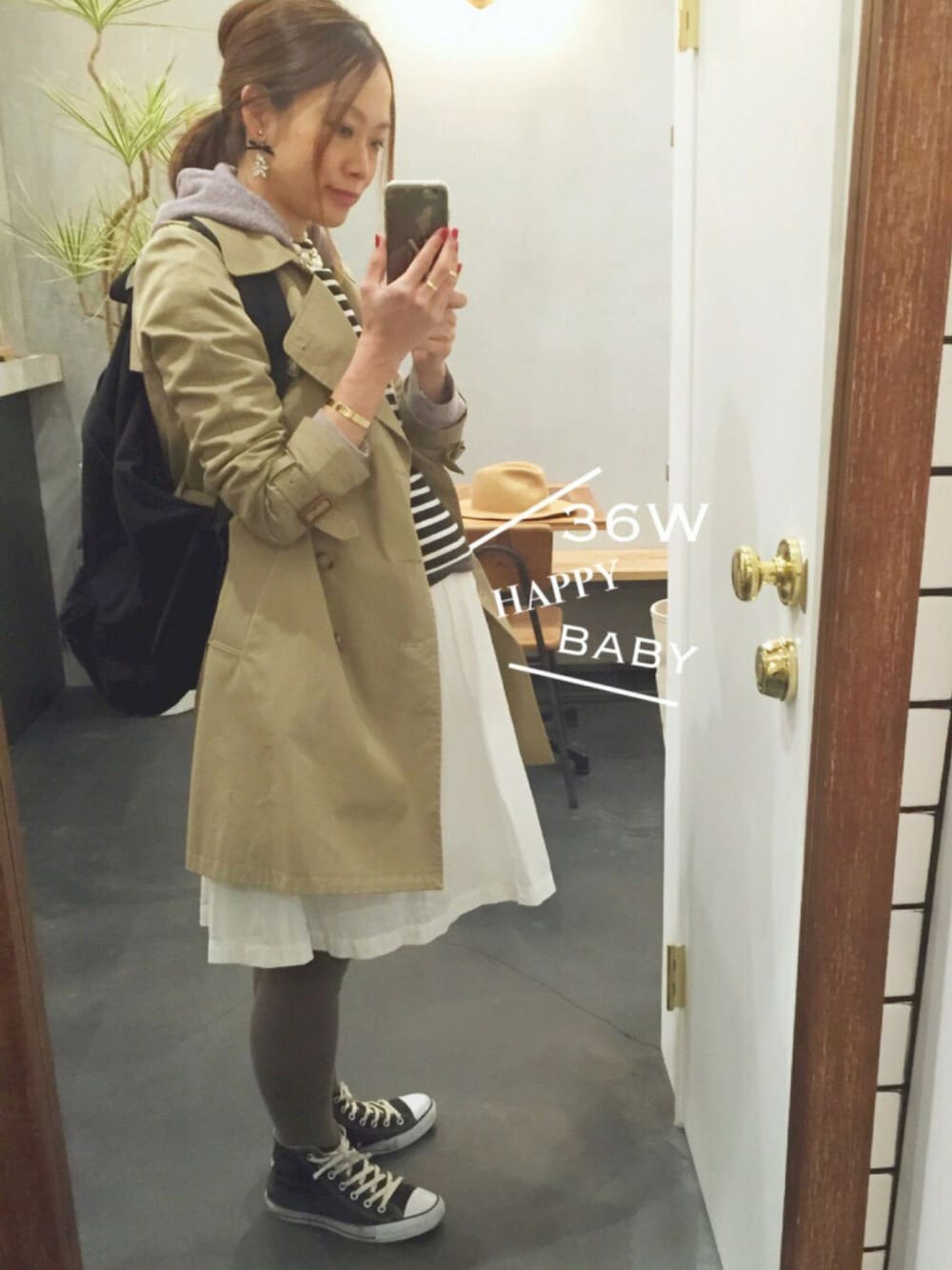妊娠36周目♥︎ いよいよって感じです♪(´ε` ) お家のクローゼットあさったら意外と着る服まだありそうです♥︎ リュックは旦那氏のお古でギャルソンのシンプルなやつですー✨