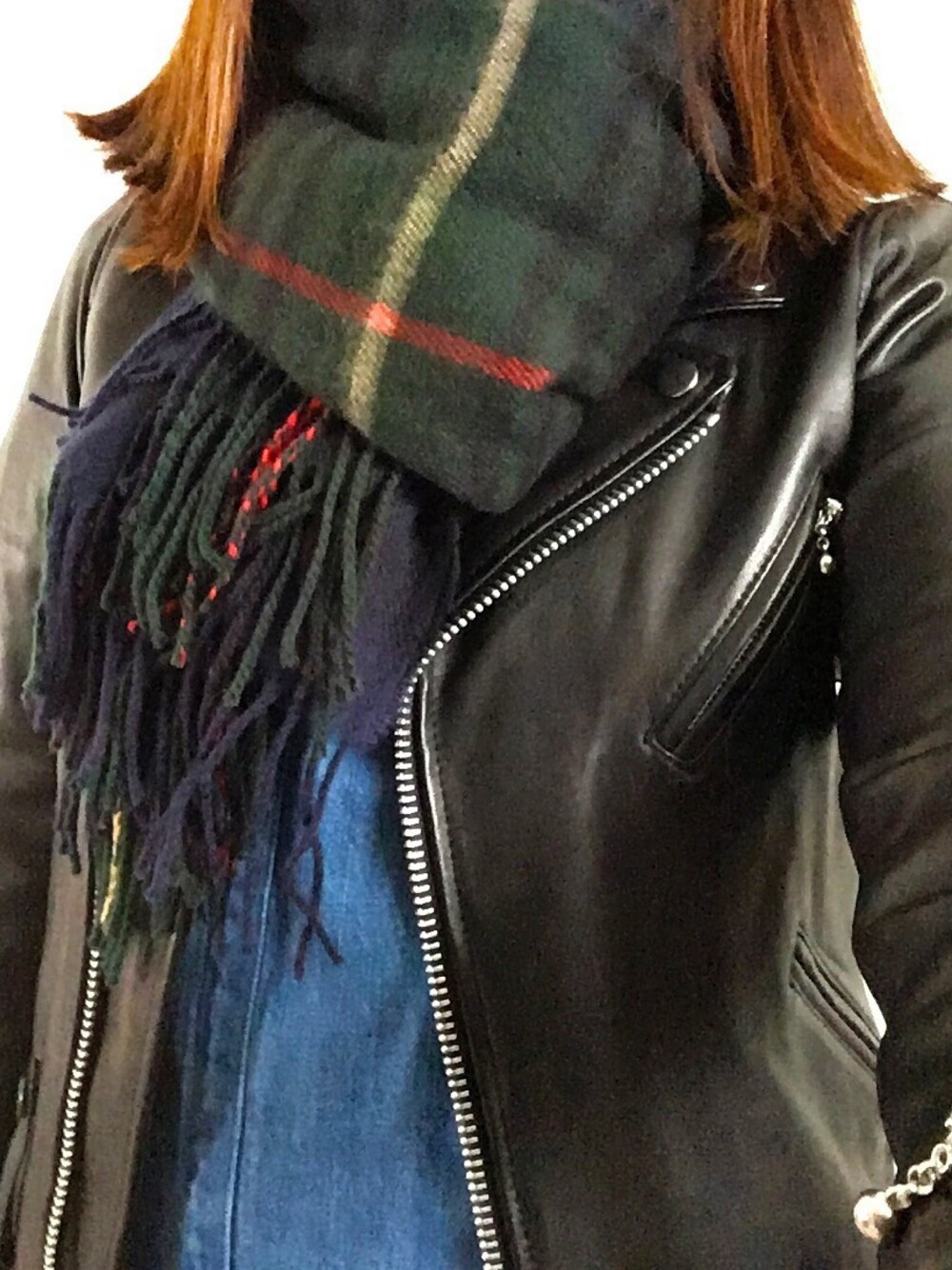 なおのライダースジャケット「SHEEP LEATHER RACING JACKET /レザージャケット/本革/羊革/ライダース/チェック/裏地」を使ったコーディネート