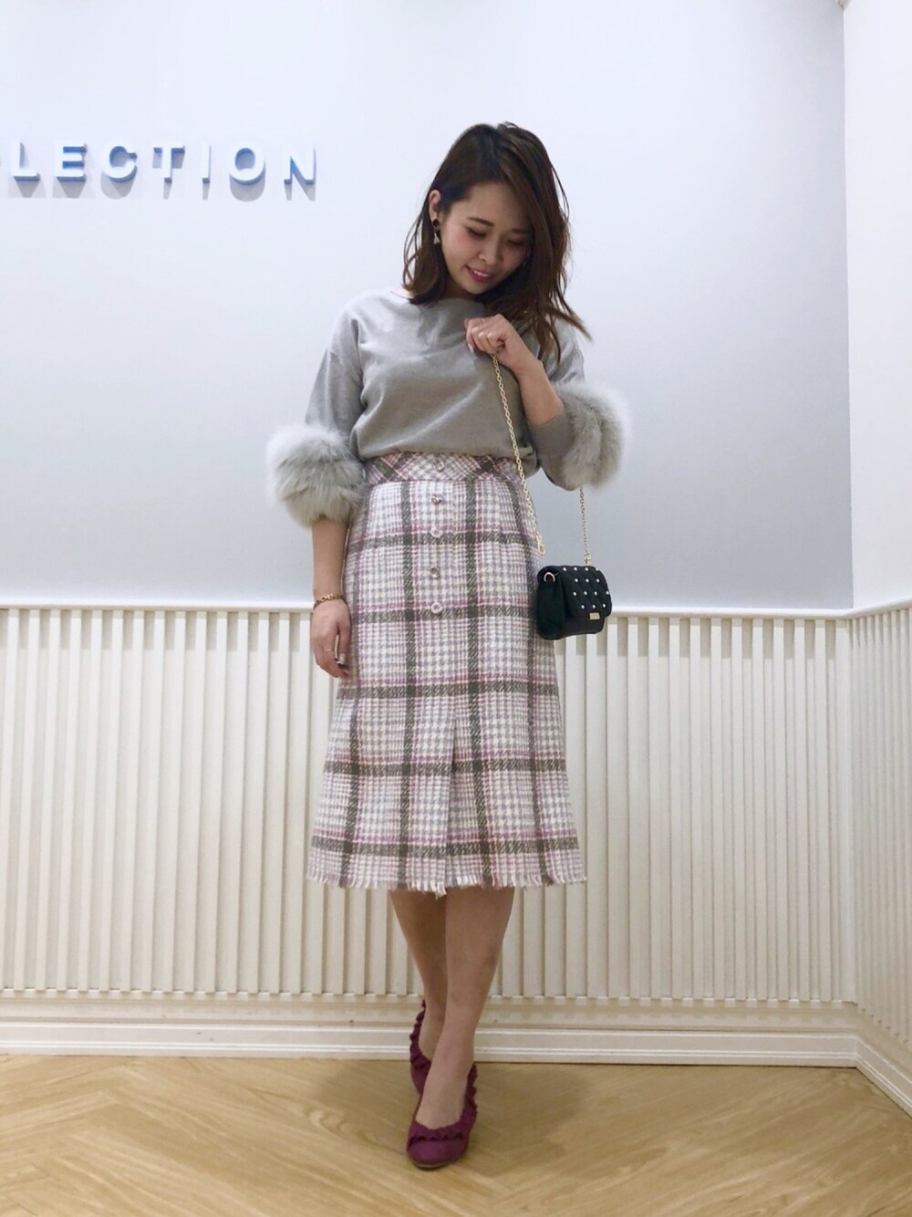 グレーニット×チェックスカート