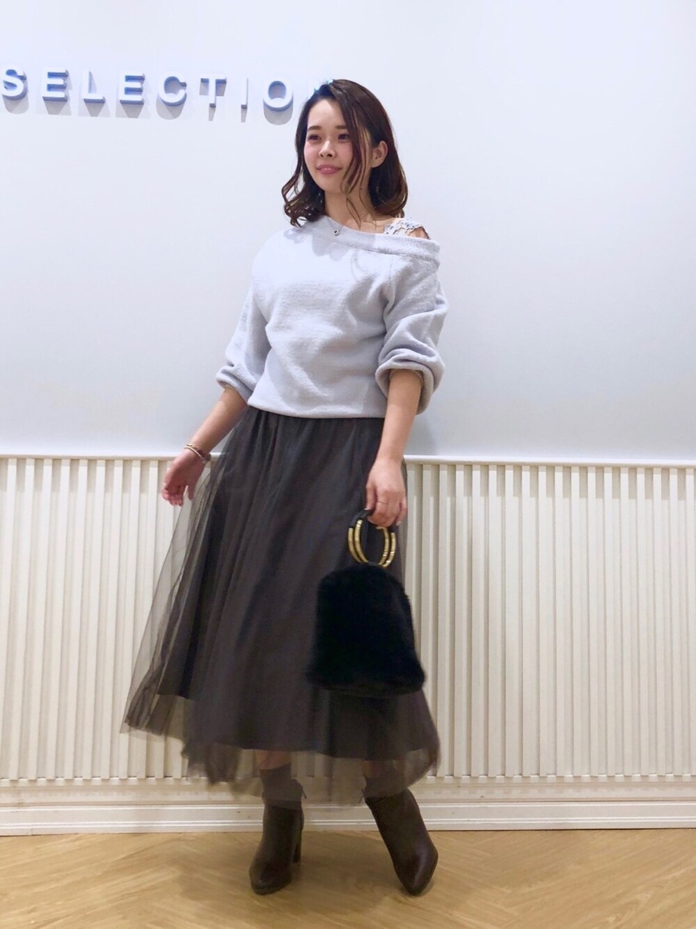 ワンショルニット×チュールスカート