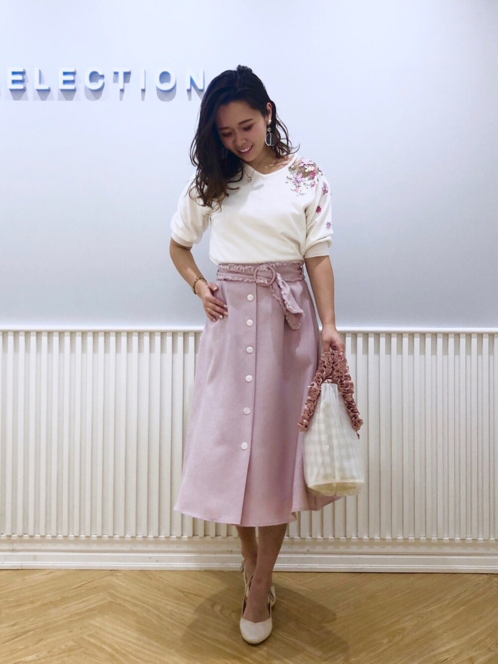 3d刺繍ニット×ピンクスカート♡