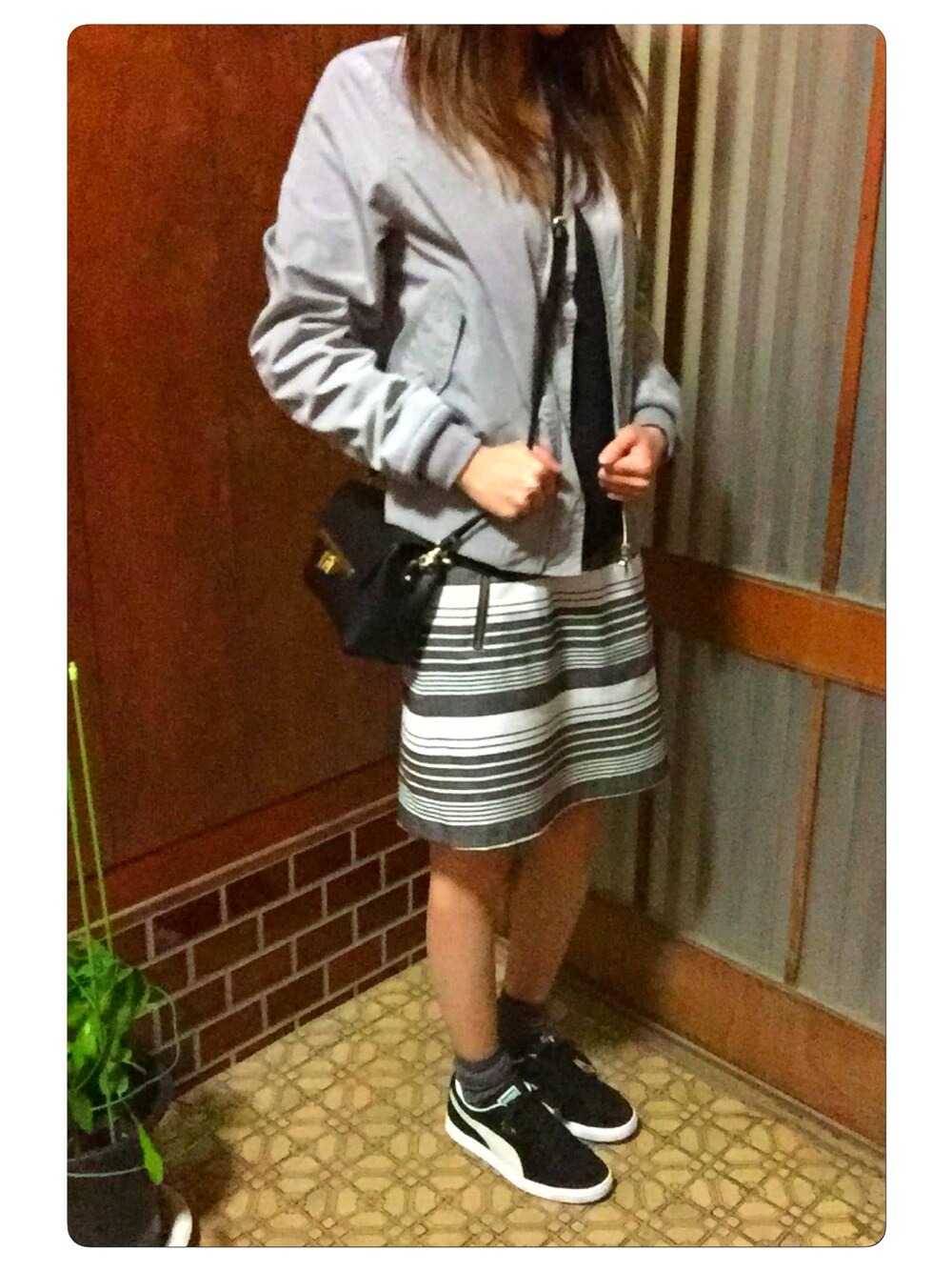 たくさん歩くよコーデ☆ 何年も前のcarnelianのスカートを履いてMA-1+スニーカーでカジュアルに。 やっぱ使えるこのバッグ好き🎵 今日は、青系なかったよ。