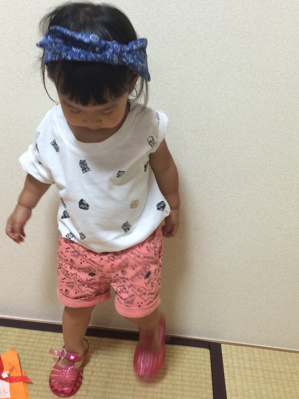 どうしてもおにいちゃんの Tシャツを着たがったので 着せてみました〜 まーぶかぶかよね笑