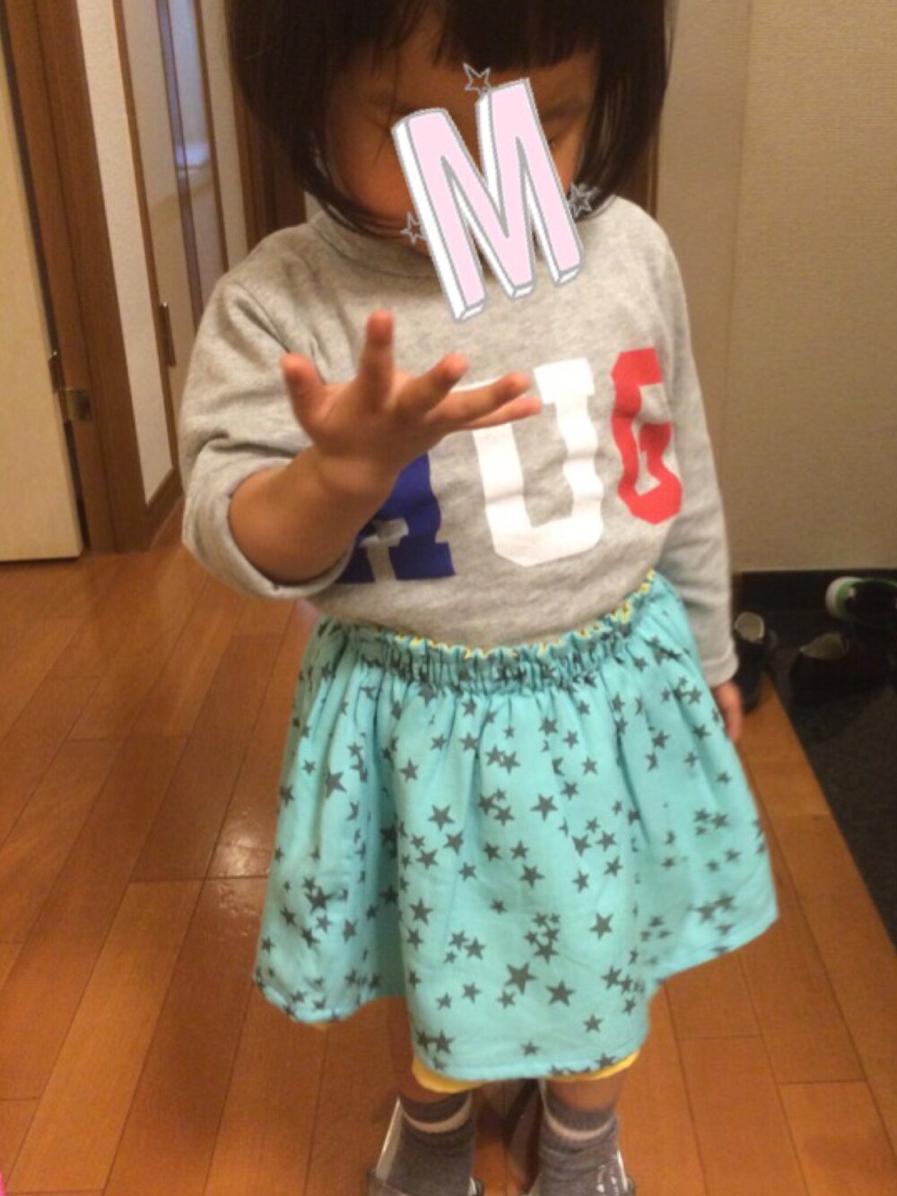 なにか手に付いてたのか… 気になったらしいです。 そして、母のクツは彼女の気の赴くままに履かれて ひとりで遊んでます笑