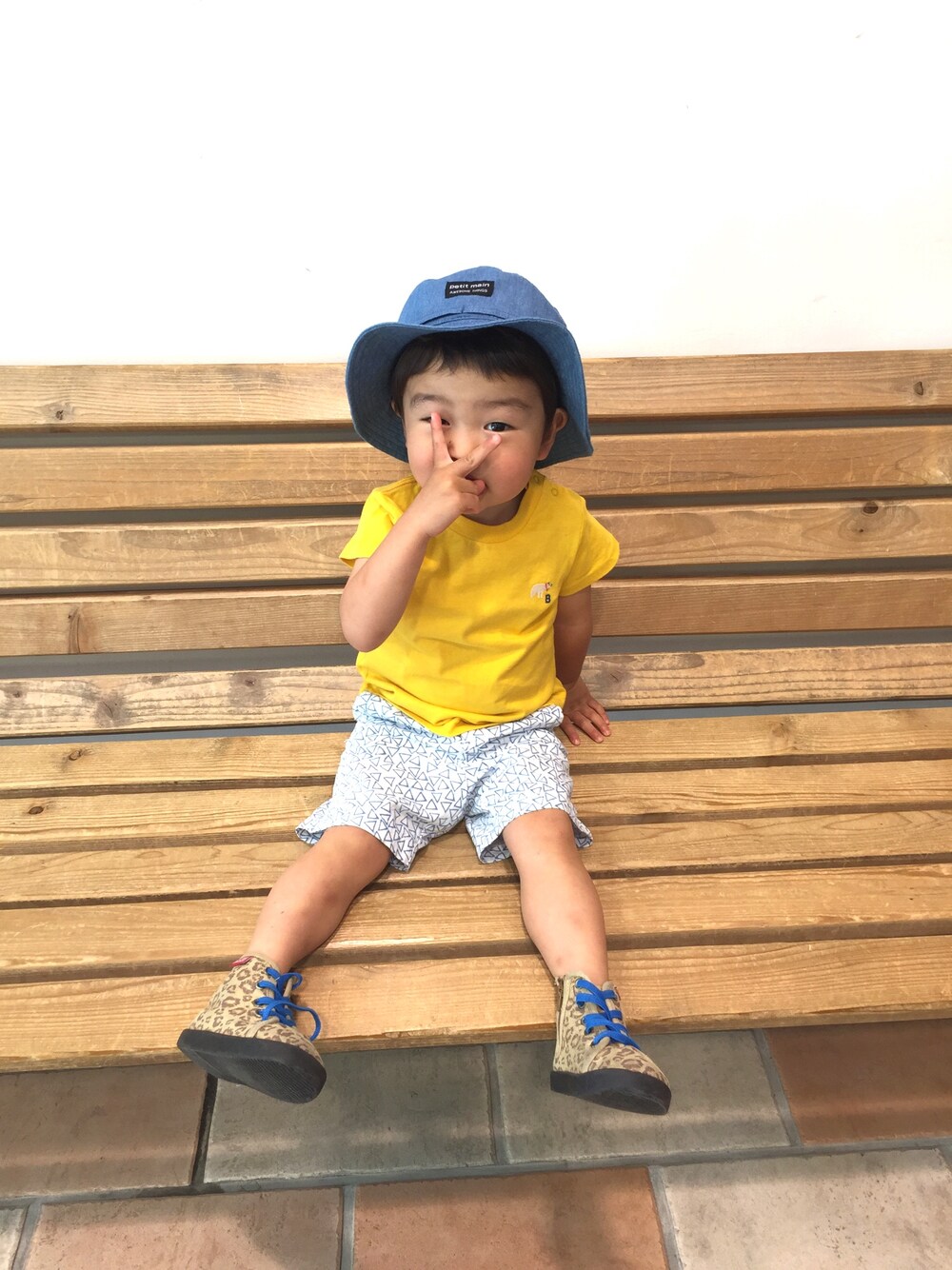 ブランシェスのTシャツ、胸にシロクマくんの刺繍ワンポイントが付いているのと後ろの首元の糸が違っていて細かいところが可愛いです。 オールドネイビーのこのパンツは何故かあまりお気に召さないイヤイヤ2歳児です。