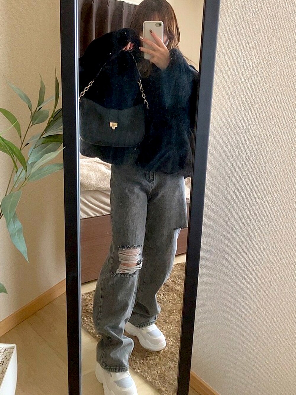 <商品番号> アウター:【on016 ブラック サイズF】 トップス:【k9064b ブラック サイズS】 ボトムス:【nh86 ブラック サイズXS】 バッグ:【yt564 ブラック】 シューズ:【ci378 オフホワイト サイズ22.5cm】