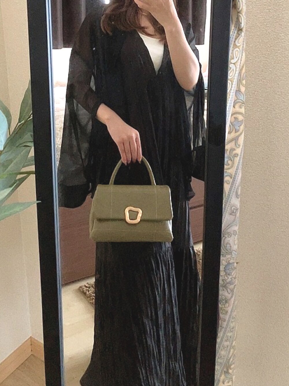 <商品番号> インナー:【dk908 オフホワイト サイズS】 ワンピース:【fo1997 ブラック サイズF】 バッグ:【at1973 カーキ】