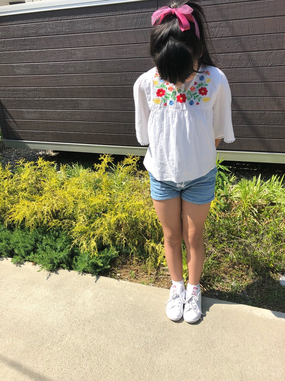 Kan*nA❤︎のシャツ/ブラウス「【キッズ】シシュウスモック5分袖/742811」を使ったコーディネート