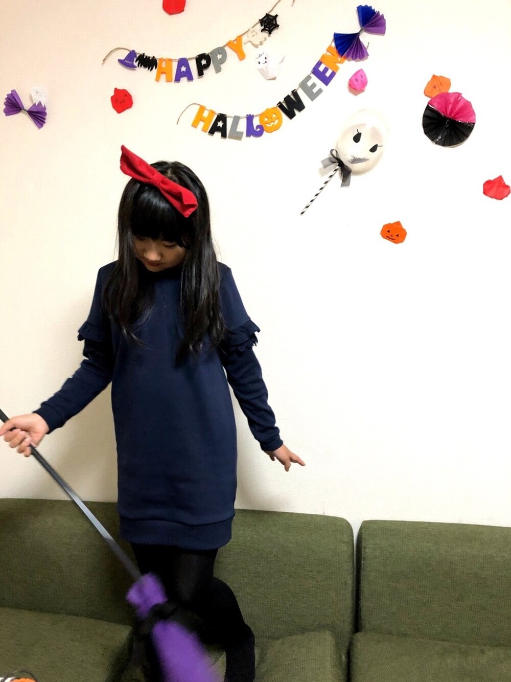 ご覧下さりありがとうございます🙌🏻 ハロウィンパーティ🎃 今年は魔女の宅急便のキキを🧙♀️ お裁縫とっても苦手だけど、リボン頑張って作ってみました🎀