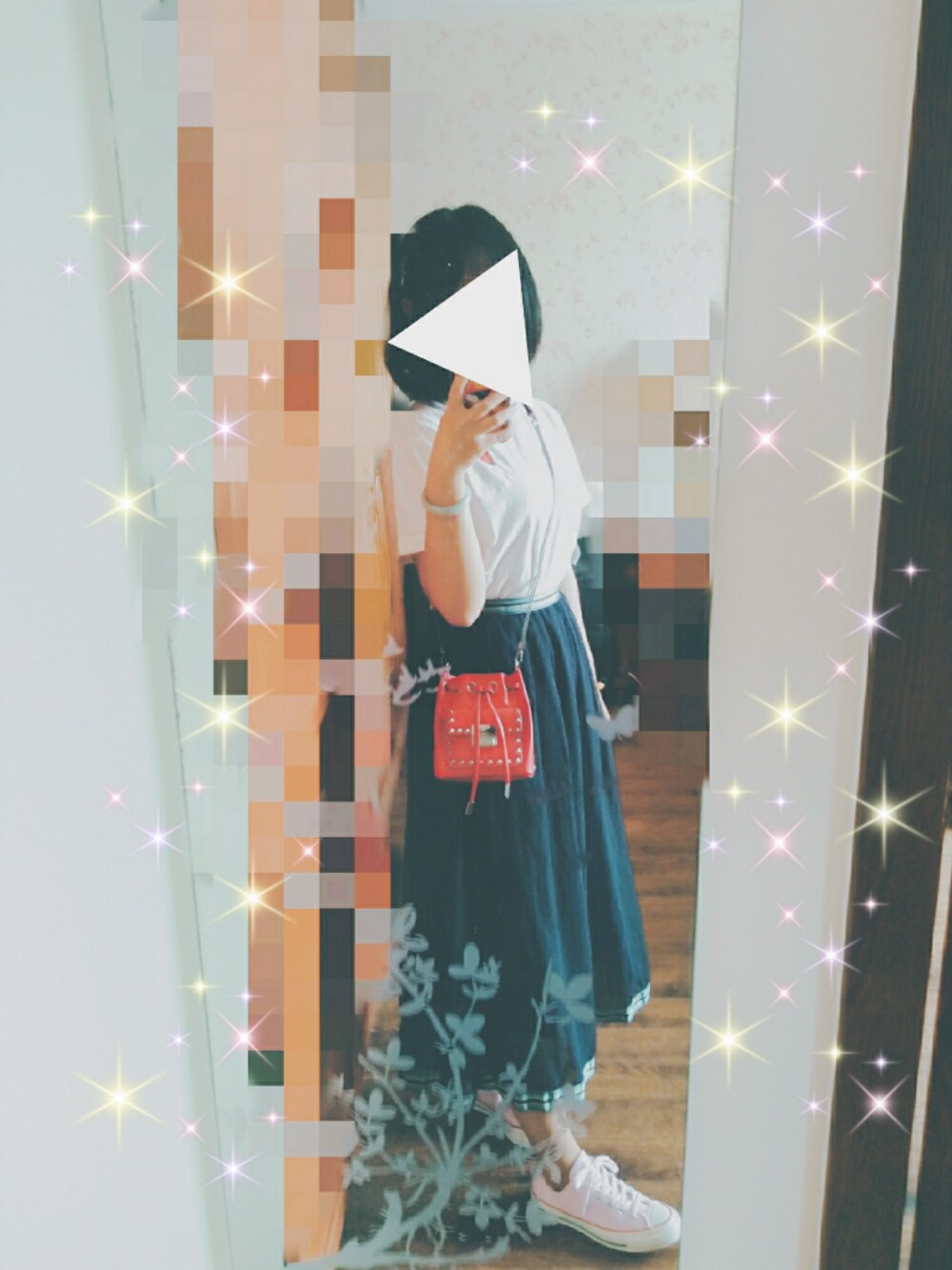 梨花的T恤,超喜欢的一件,刺绣的红色爱心棒棒糖(´▽`ʃƪ) 背上红色mini水桶包,算是和T恤刺绣的一点呼应~
