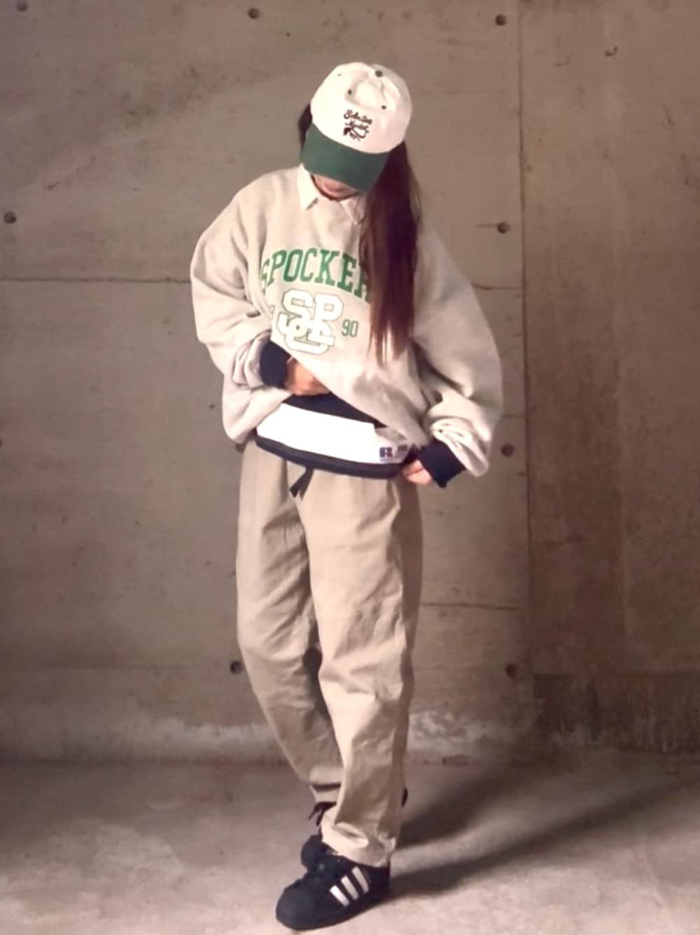 ありのスウェット「【SPOC STORE】裏起毛 ワンポイント刺繍/カレッジロゴ オーバーサイズスウェット」を使ったコーディネート