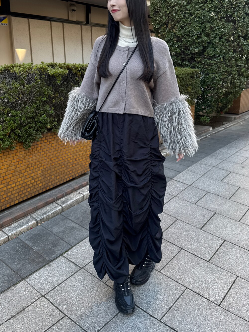 袖ファーのニットはグレーの色味が大人っぽくてカジュアルとかモード寄りなコーデができてお気に入り🎶