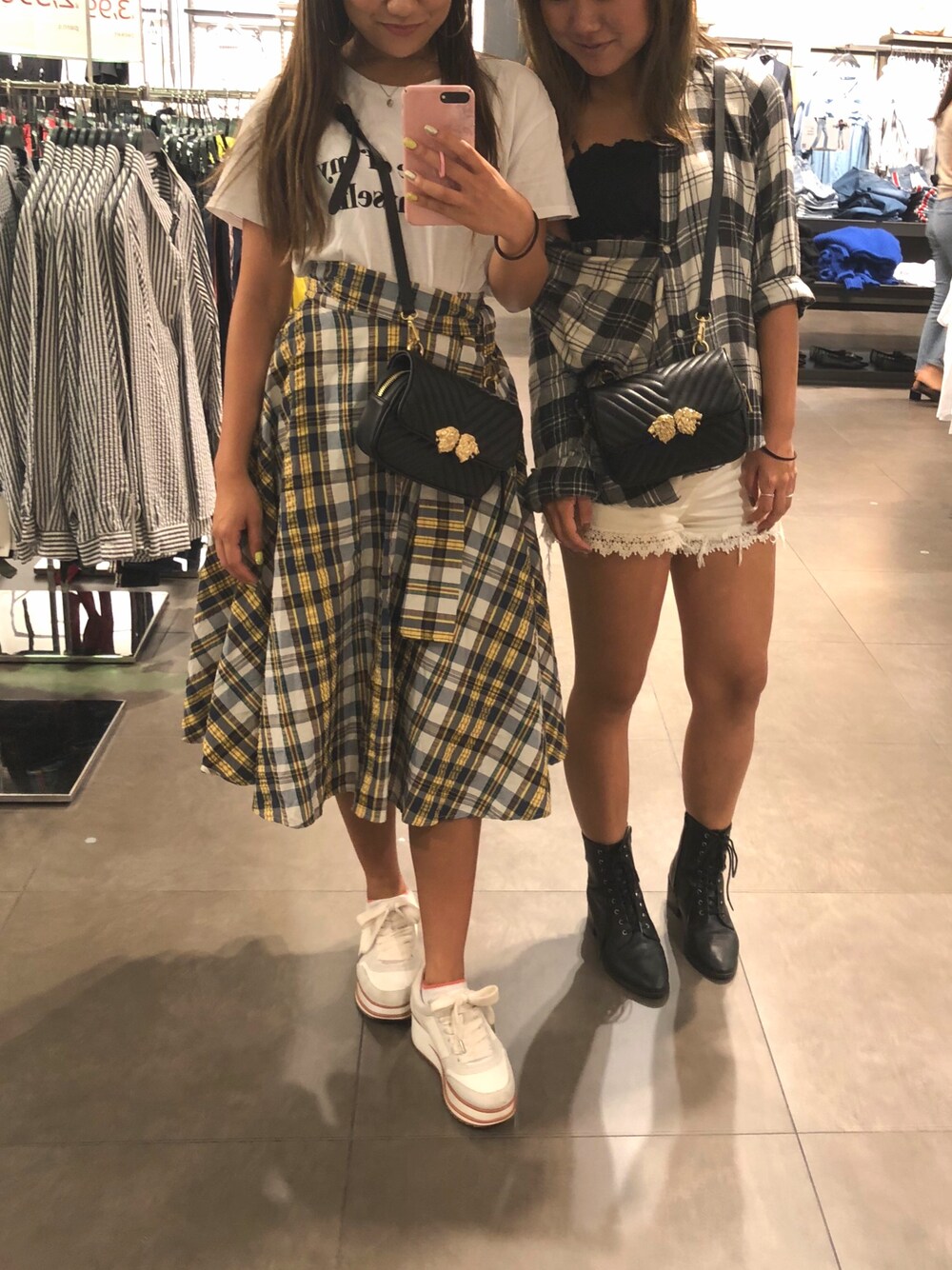 my friendと bagとチェックかぶった☺︎ たまたまのリンクootd ❤︎🤣