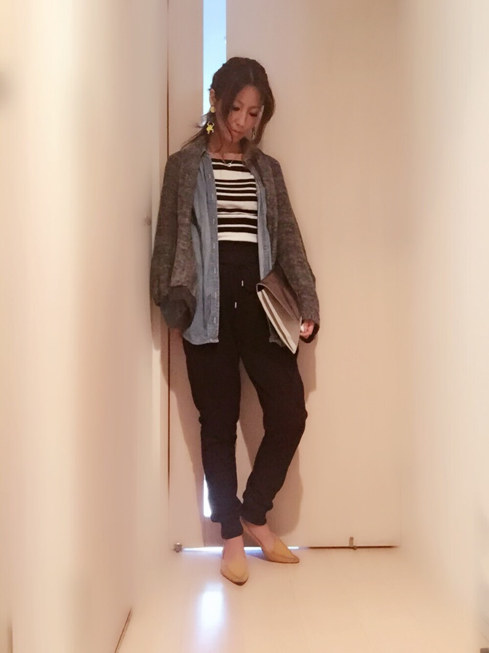 ママ友とランチ\(^o^)/ 雨の中子供たちの送り迎えもあるし楽ちんスエパン♪ ヘアアレは小窓に載せてみましたー♡ 寒いと思って重ね着して行ったら意外にムシムシしてたっていうね。。。w