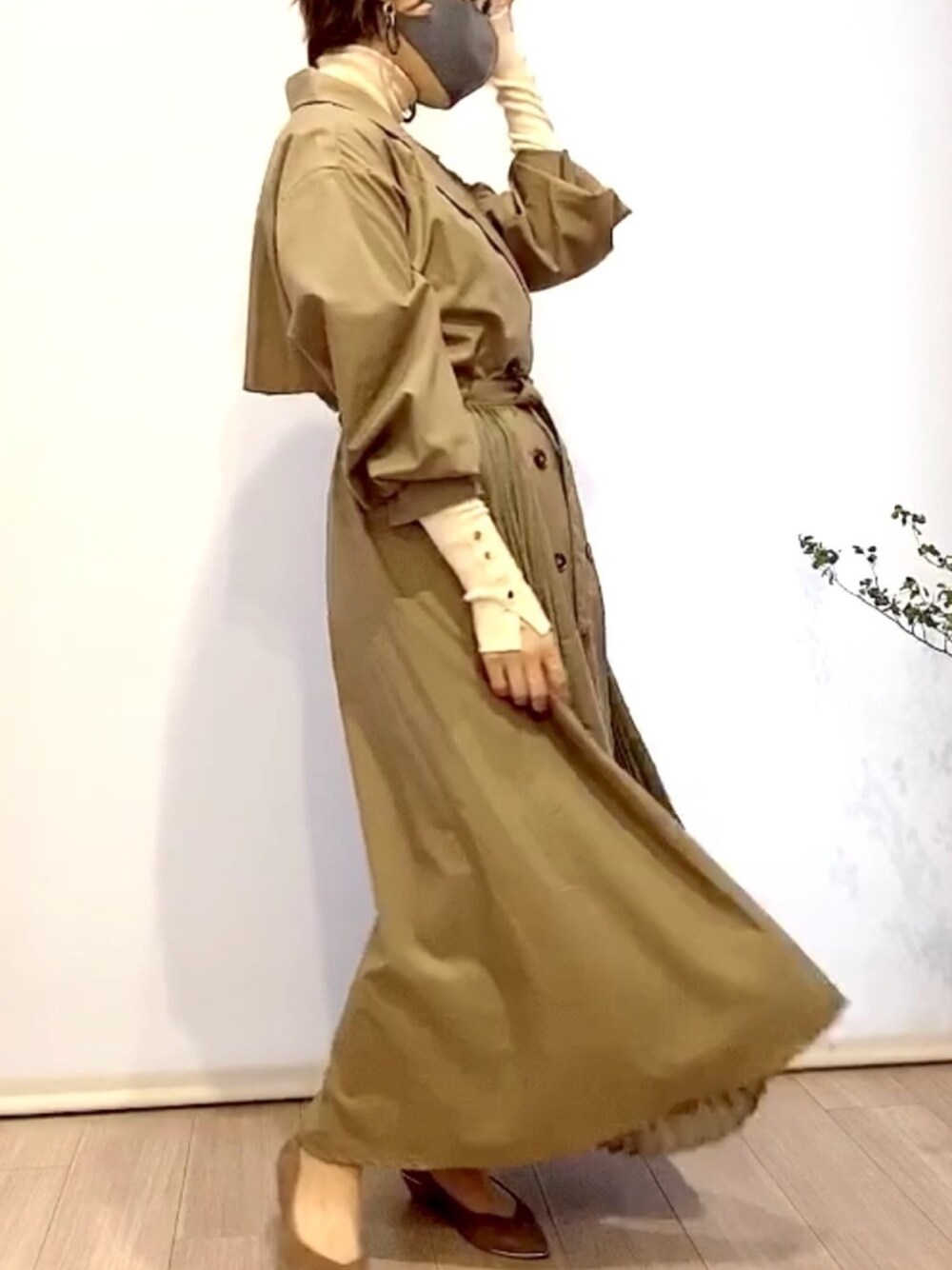 chicchaのトレンチコート「accordion trench one-piece coat【yukichi.】」を使ったコーディネート