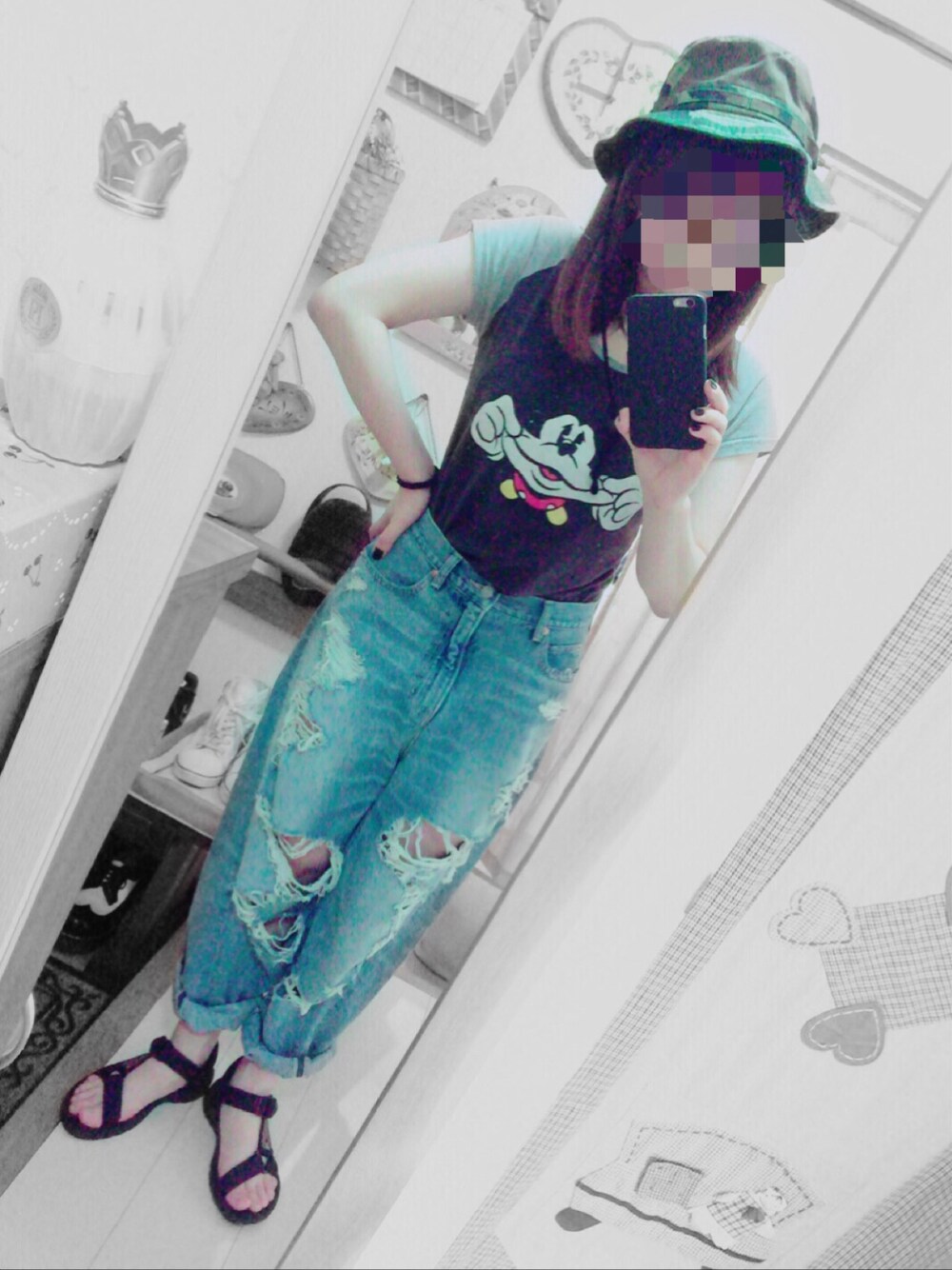 部屋着のミッキーTシャツ 昨日ゲットしたRNAのデニム。 今日は引きこもってクレヨンしんちゃんのDVD見てます〜〜