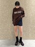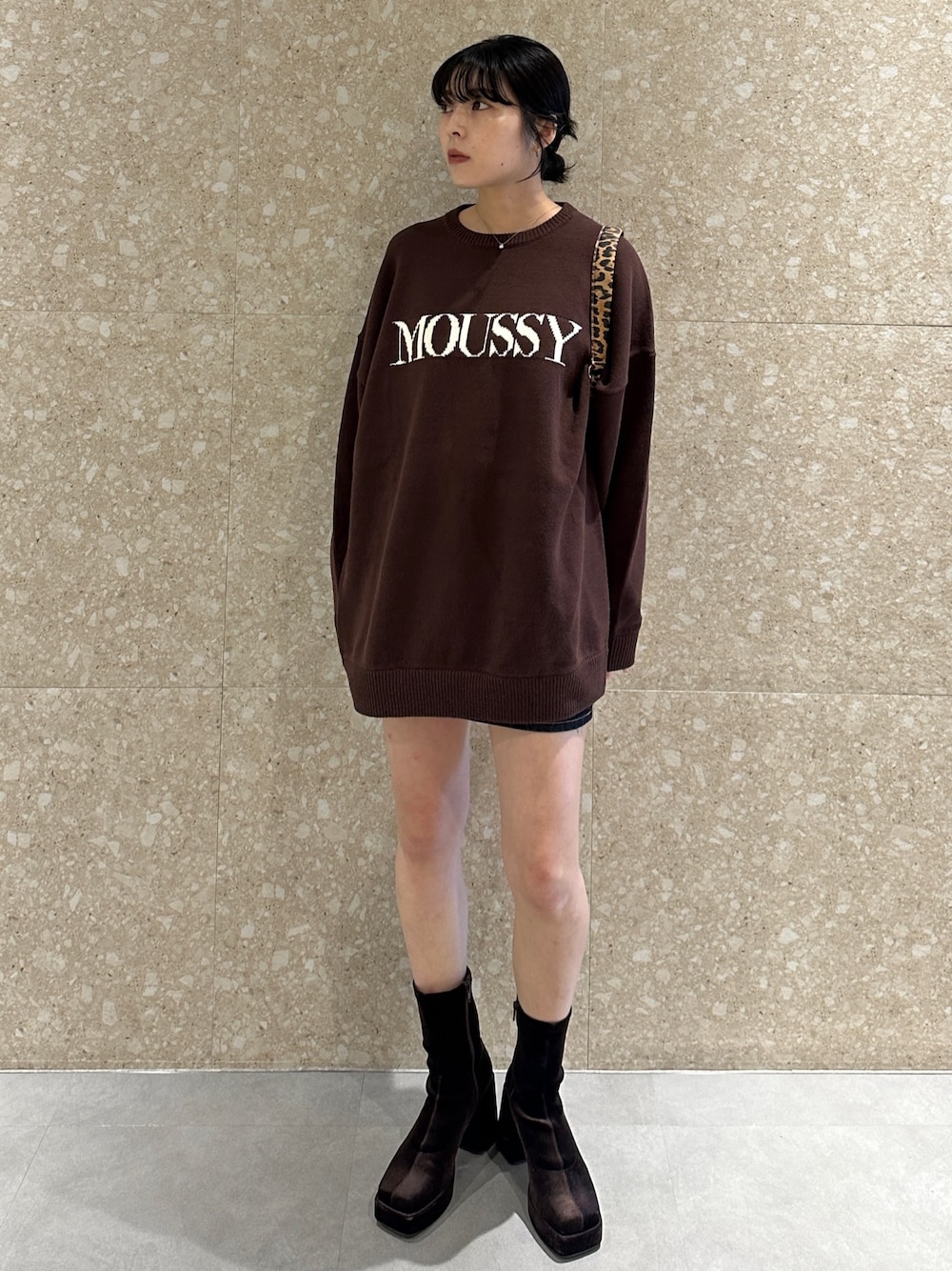 rino(MOUSSY ミナモア広島店)のニット/セーター「【ZOZO・一部店舗限定】MOUSSY LOGO KNIT / マウジーロゴニット」を使ったコーディネート