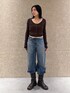 トップス:これ着るだけでおしゃれ見え! デニム:158cm サイズ0着用 丈感長めの作りなので、折り返して履くか・ヒール合わせで◎ ウエストスッキリ!太もも周りゆるっと! 脚長効果抜群です!!!