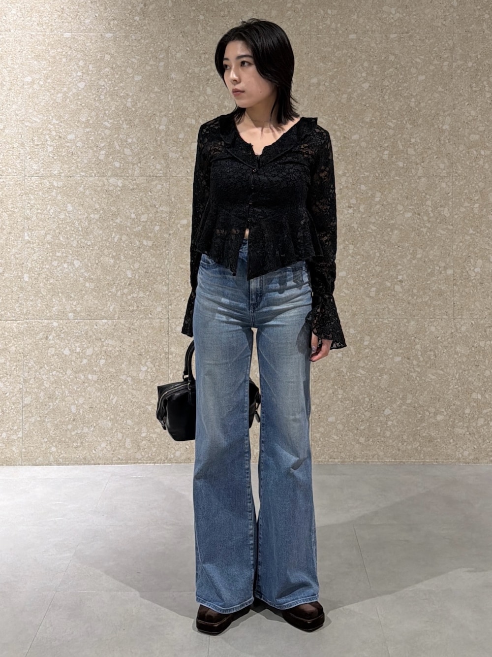 rino(MOUSSY ミナモア広島店)のTシャツ/カットソー「FRILL LACE ブラウス」を使ったコーディネート