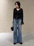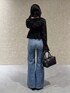 丈感長めなので、脚長効果抜群・moussy史上で1番のストレッチ性◎ 履き心地抜群!!! 程よいフレア感なので、綺麗に履きやすい! 158cm サイズ23インチ着用