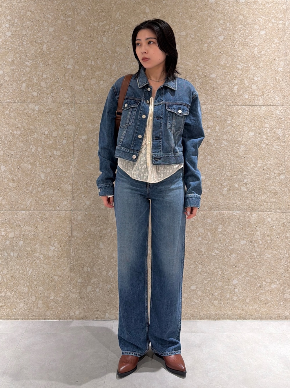 素材が柔らかくて、MOUSSY史上最軽量なので着心地抜群です!✨ 1日中着てても疲れない!動きやすい! デニム:158cm サイズ23インチ着用 丈感長めです! ブーツ:23.5cm サイズM