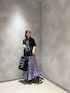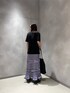 トップスのコードカラーとスカートの色をあわせたコーディネートです。 カジュアルだけど女性らしさをテーマに。トップスもボトムスもデザイン性があり、1枚で様になるアイテムです。