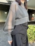 【トップス】程よいハリ感と滑らかさを兼ね備えた肌触りの良いシースルーニットトップス。衿と袖は肌当たりの良い柔らかいニット。袖のたぽっとしたボリュームが程よく腕や肩まわりをカバーしてくれます。 【ワンピース】ジャンパードレスのインナーにキャミワンピースがドッキングレイヤードされたデザインワンピース。 そのまま1枚で着たり、フロントのファスナーを開けショルダーを垂れ下げてキャミワンピースをメインとしても着用出来ます。