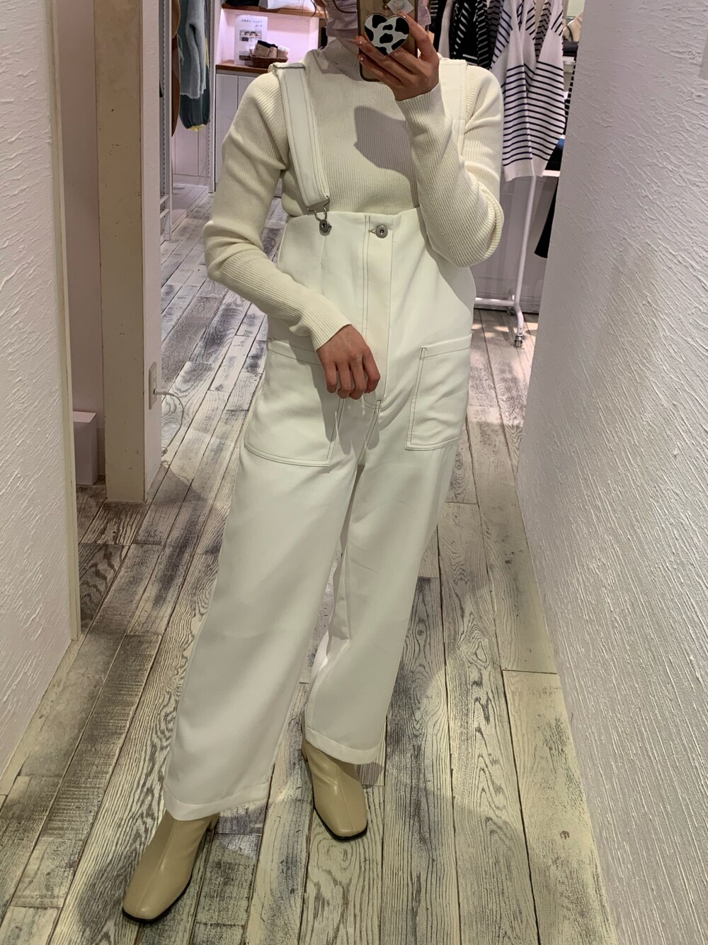 サロペのオールホワイトコーデずっとしたくてやっとできた!!🤍🎶