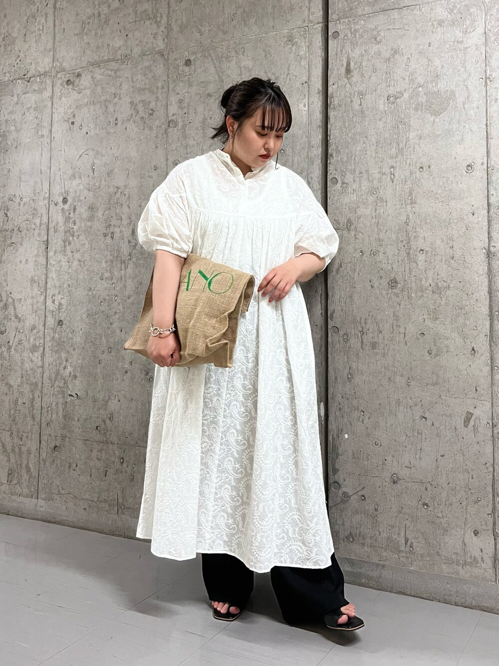 sakai(KBF 西宮ガーデンズ)のワンピース「刺繍ギャザーボリュームワンピース」を使ったコーディネート