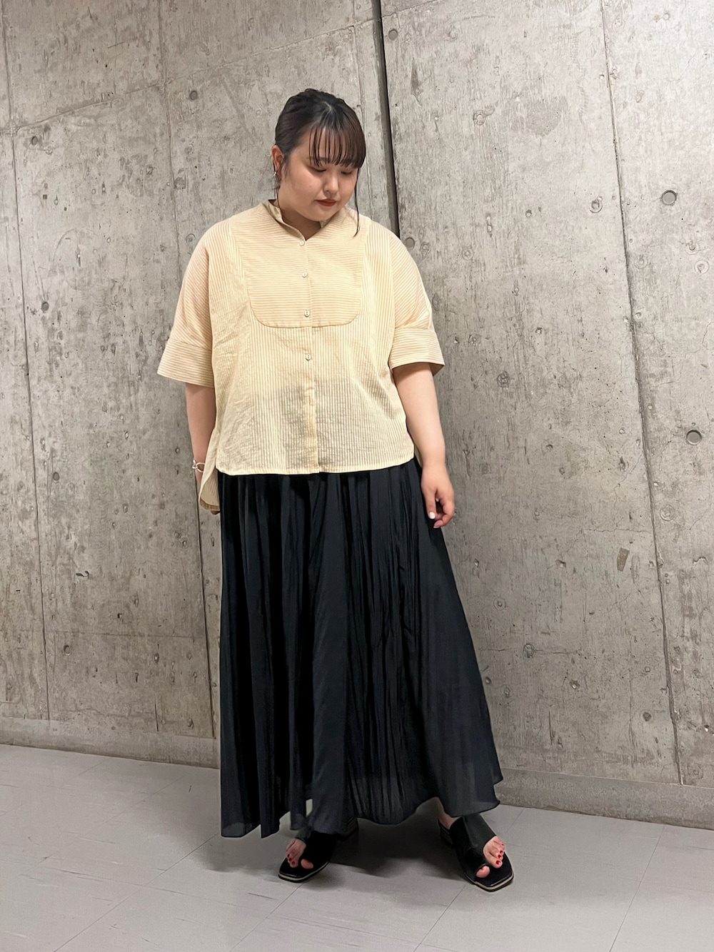 ブザムストライプBIGシャツとシアーボリュームフレアスカートのご紹介です! シャツはシアーな素材感でストライプのラインも細く さりげない感じが可愛いくておすすめです! スカートはボリュームたっぷりでペチコートが膝丈ぐらいなので 程よく足が透けて夏でも軽く着て頂けます🫧 オールゴム仕様がとっても楽でストレスなく履いて頂けます🌷 是非チョックして見てください🍑