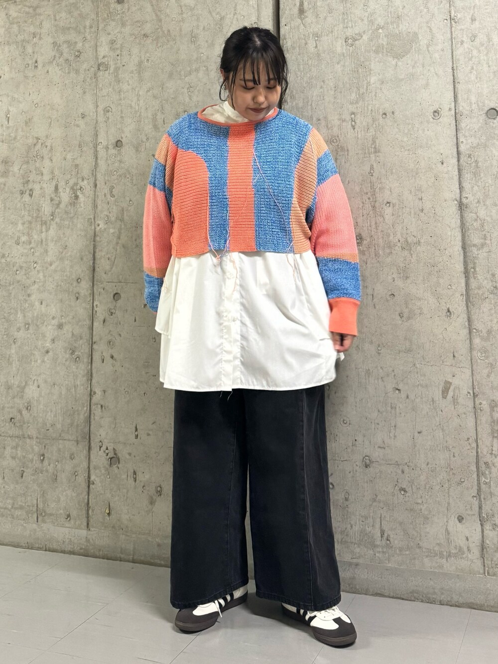 ニットはデザインが可愛く一枚着るだけでコーデを華やかにしてくれます! 一枚でも可愛いですが、シャツワンピースをレイヤードするのも可愛くておすすめです! 身幅やお袖もゆったりしているので着やすくて◎