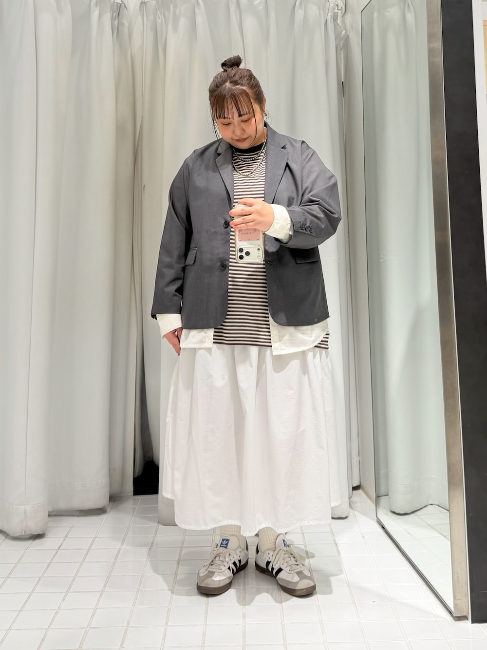 投稿見て下さりありがとうございます☺ ジャケットはオーバーサイズで、一枚羽織るとおしゃれになって◎ きちんと感もありつつカジュアルに着られるのでおすすめです! トップスは程よいシアー感が可愛くて◎ スカートはシルエットが可愛く、ウエストもゴム仕様ではきやすいです! 是非チェックしてみてください☁️ ------------------------------------ LINEで公式 KBF西宮ガーデンズ店を追加頂くとLINEでご対応が可能です! オンラインストアの商品を店舗に取り置き・取り寄せして頂ける便利なサービス「とりおけーる」もございますので是非ご利用下さいませ。 お気軽にお問い合わせ下さいませ! KBF西宮ガーデンズ店 〒663-8204 兵庫県西宮市高松町14-2 西宮ガーデンズ 1F TEL:050-2017-9178