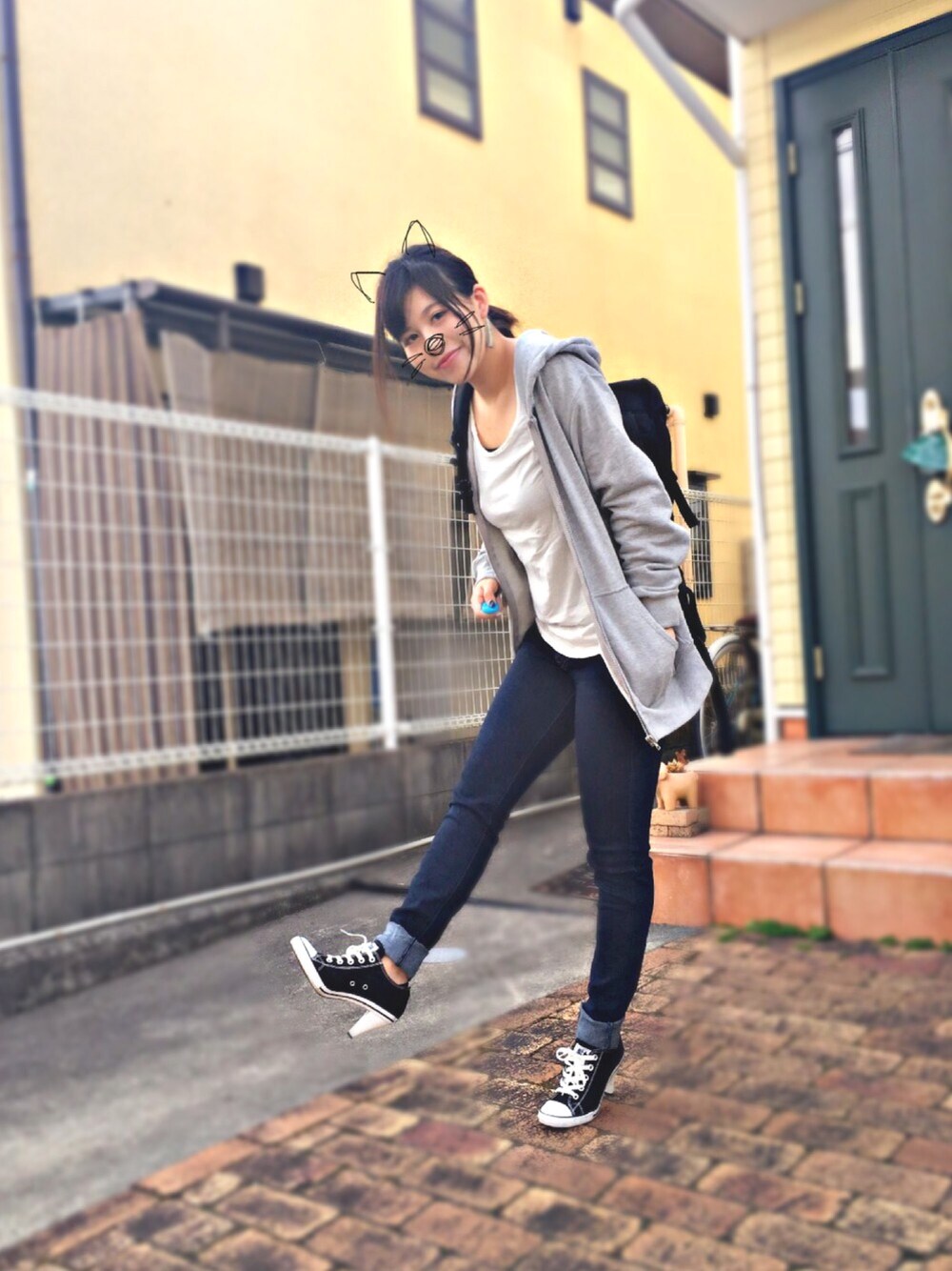 こんばんは🌙*.。 今日は軽いお出かけdayだったので ラフな感じにしました(*^^*) ポイントは久しぶりに履いた コンバースのヒールスニーカー💕 いつもご観覧、いいね、コメント セーブ、フォローありがとうございます┏●