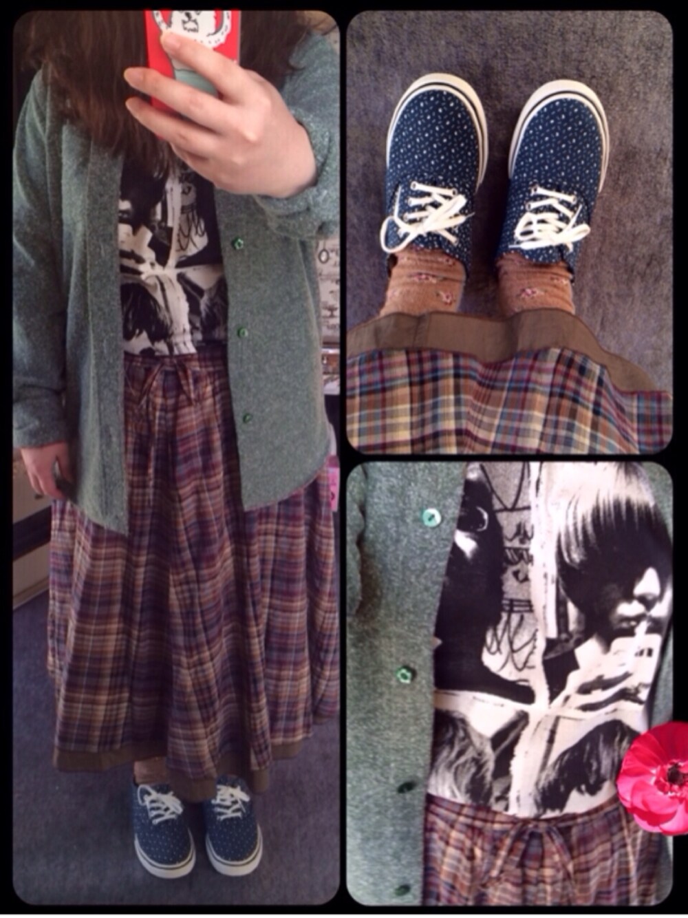 センスの無さ シャツとスカートの組み合わせには満足してるけど 店員さんにロックTシャツ着ればいいって言われたのですが… とりあえずKEYTALKというTシャツにしました。 どんな色のシャツを着ればいいですかね?(´;ω;`)