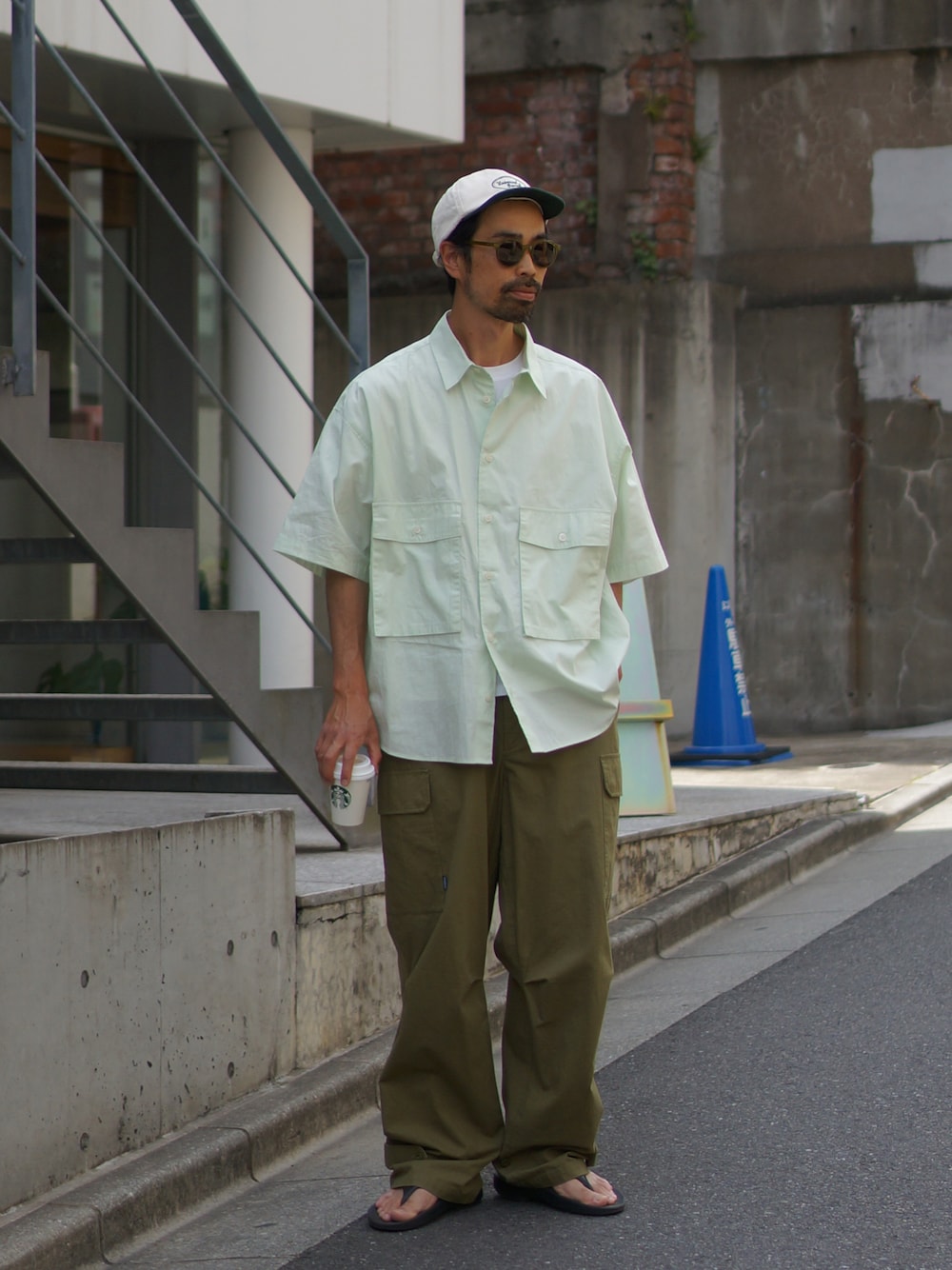 初夏らしいグリーンのシャツでワントーンコーデしてみました。